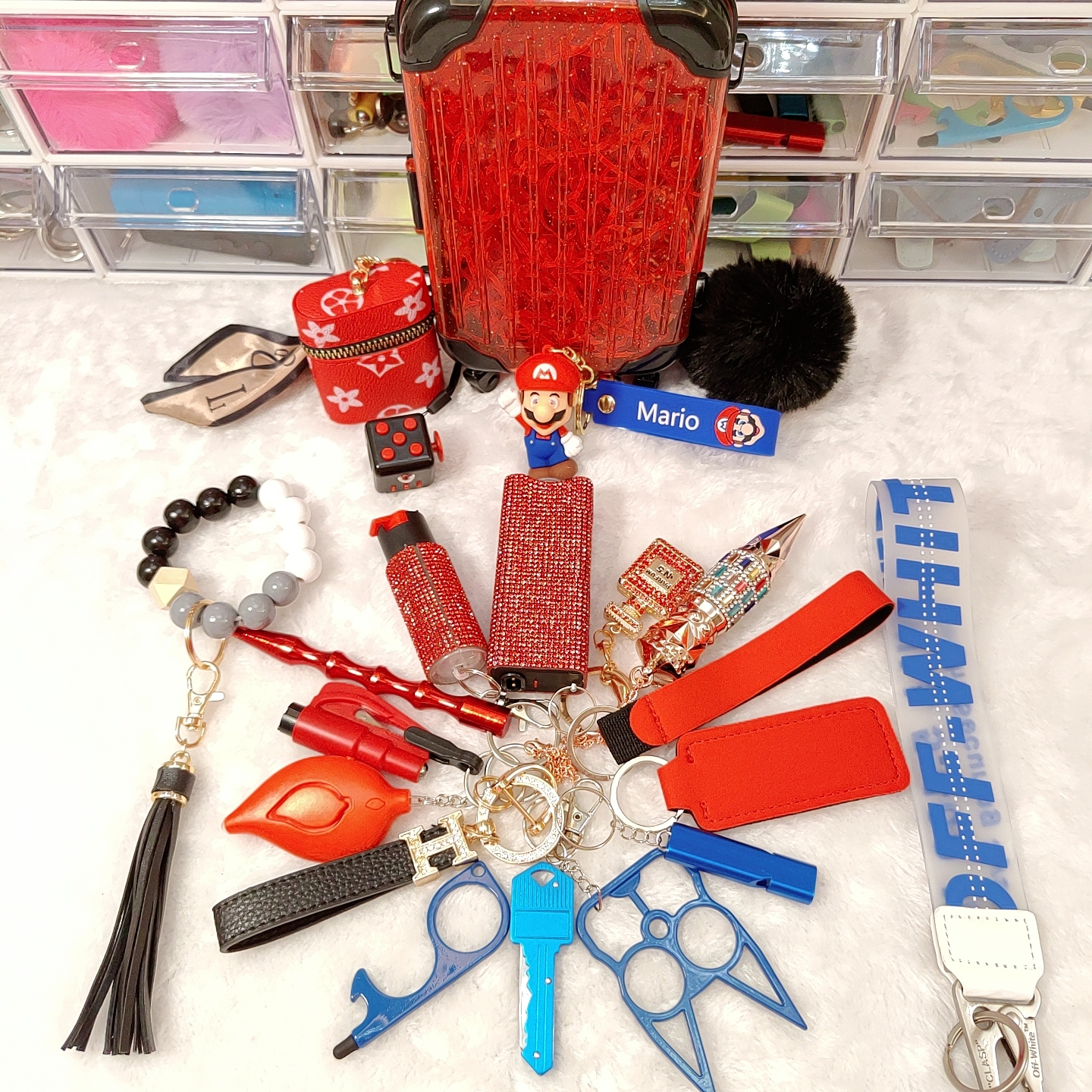 SUPER MARIO ALL STAR 21-in-1 SELF DEFENSE KEYCHAIN SET includes: